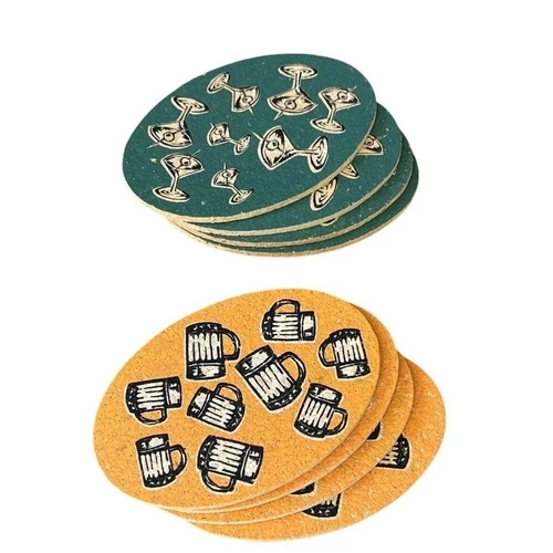 Vintage Custom Cork Oval Coasters w/Beer Mugs & Martini Glass Retro Summer (8)