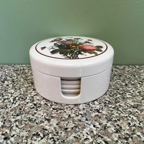 6 Vintage Melamine Coasters & Holder Floral Design