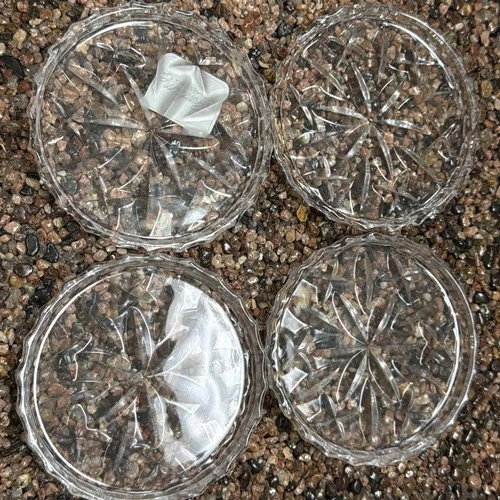 4 Coasters Gorham Crystal Lady Anne Pattern 3 3/4" Original Box Made in China