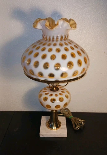 Vintage Fenton Glass Student Lamp Honeysuckle Opalescent Coindot 10" Fitter HTF