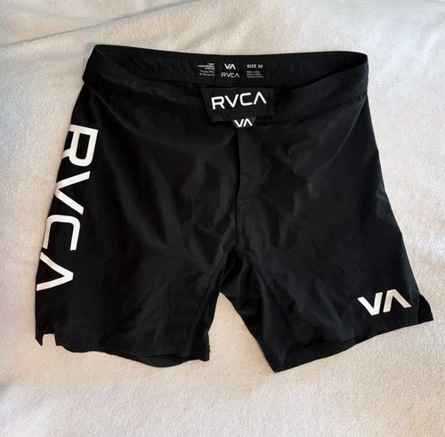 RVCA Fight Scrapper Grappling MMA Shorts Size 30 Black 4Way Stretch 17"