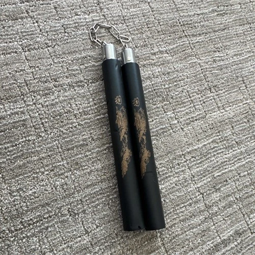 Black Foam Nunchucks Gold Dragon Design Martial Arts Training Practice Weapon