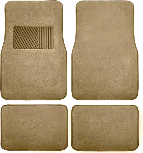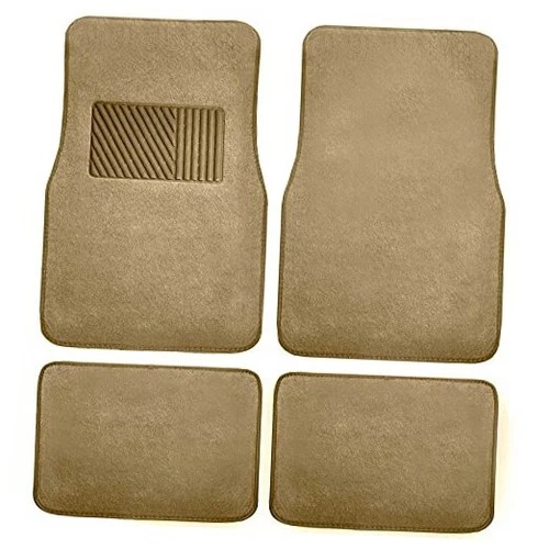 Car Floor Mat 4 Piece Set Driver's Seat with Heel Pad Deluxe Front 66 x Beige