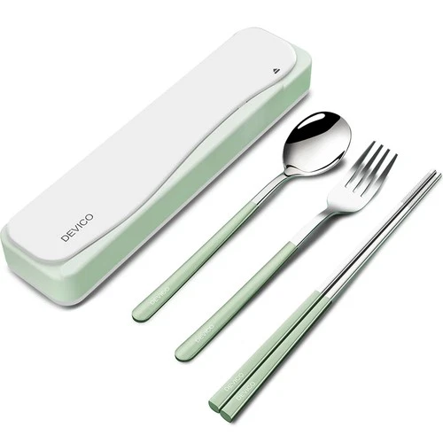 4 PCS Travel Utensils 18/8 Stainless Steel Cutlery Set Portable Camp Light Green
