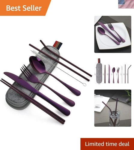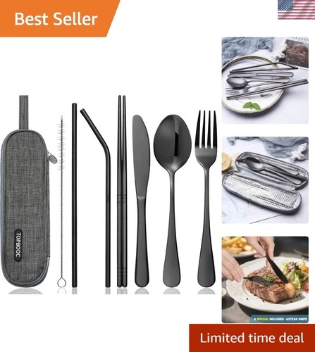 Travel Utensils Set with Case – 8-Piece Reusable Stainless Steel Camping Cutl...