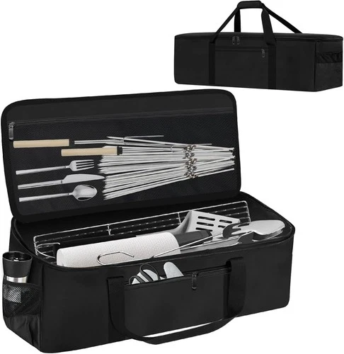 Grill Tool Storage Bag 22" BBQ Utensil Holder Caddy for Camping Picnic Black