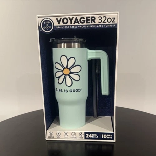 Life is Good Voyager 32oz Stainless Steel Tumbler, Light Blue, Flower
