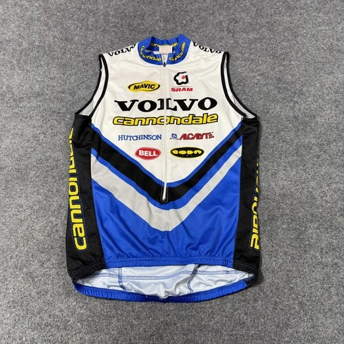 Cannondale Cycling Vest Mens Large Blue White Volvo Windstopper Zip Pockets USA