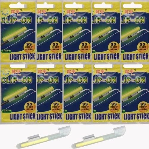 Clip On Bulk Fishing Glow Sticks Rod Tips Pole Light Night Tackle 20 PCS