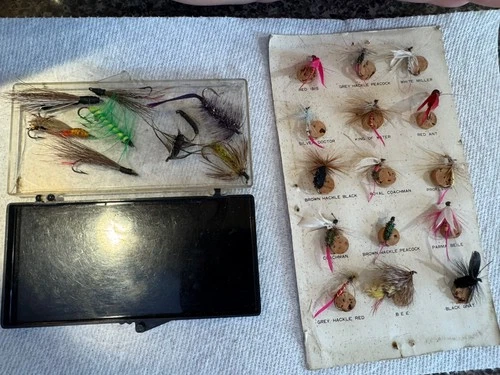 15 Vintage FLY FISHING FLIES ON CARDS Hand Tied + 9 others