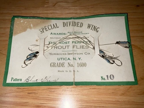Vintage Horrocks-Ibbotson Co Blue Dun No 10 Special Divided Wing Trout Flies (5)
