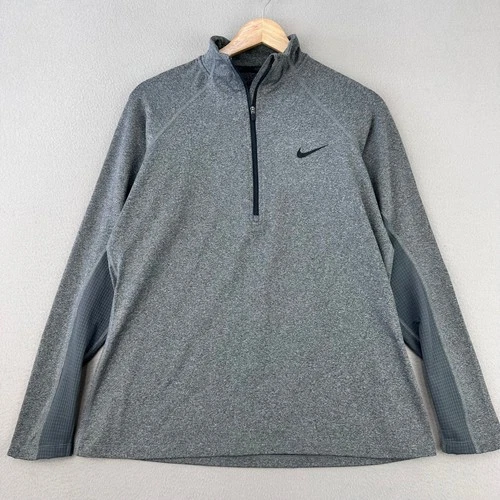 Nike Running Quarter Zip Pullover Mens L Gray Long Sleeve Dri-Fit Gym Trail