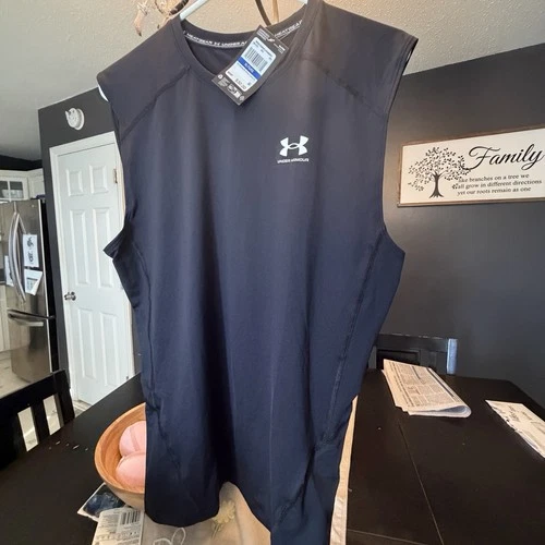 Under Armour HeatGear Men's Compression Sleeveless Base Layer Top XL Black