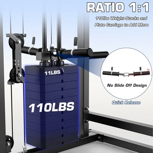 Smith Machine with Weight Stacks 240lbs and Add More Ratio 1:1 Home Gym System