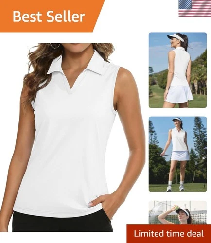Women's Sleeveless Golf Polo Shirts Collared Tank Tops UPF 50+ V-Neck Quick D...