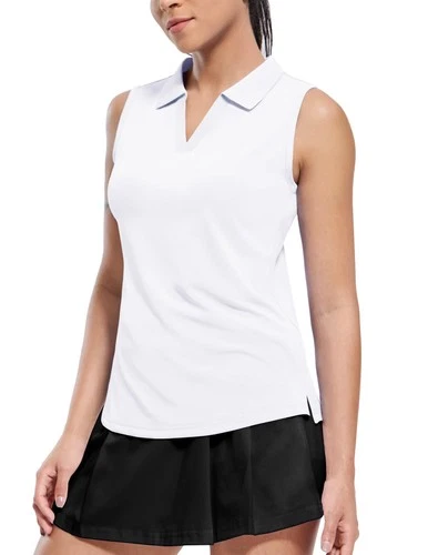 Womens Sleeveless Golf Polo Shirts Lightweight Tennis Sport Tops, White, X-Small
