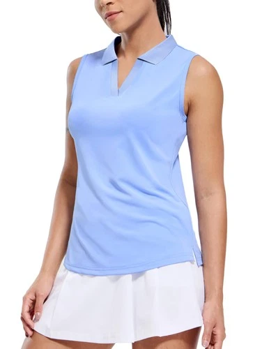 Womens Sleeveless Golf Polo Shirts Lightweight Tennis Sport Tops, Light Blue,...