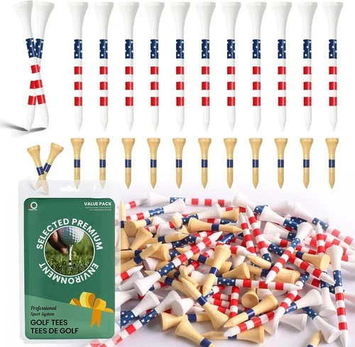 Golf Tees Wood Wooden 3 1/4 Long Tee and 1 1/2 Short Tee Set, Bamboo Ball Tees
