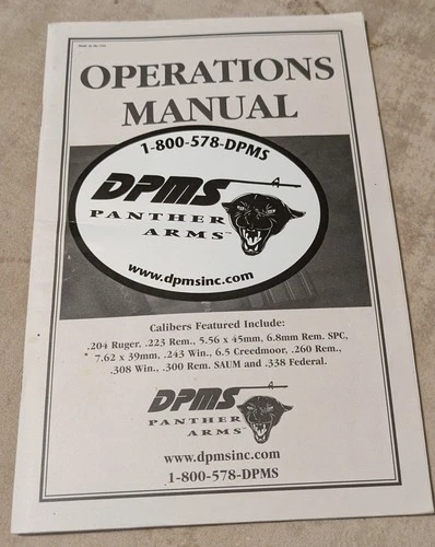 DPMS Panther Arms Operations Manual 5.56 X 45mm .223 Caliber LR Series Ruger Rem