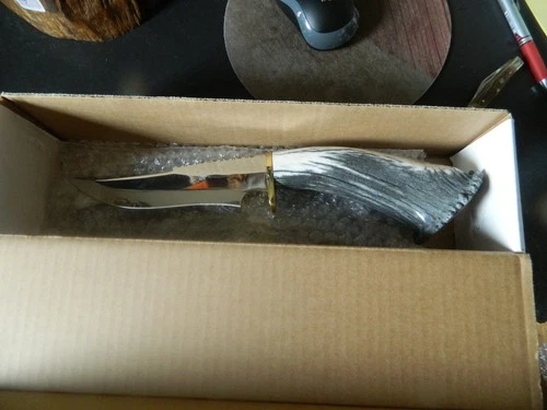 RITE EDGE CUTLERY 12" BOWIE KINFE HUGE ELK HANDLE 440 STAINLESS BLADE LEA SH
