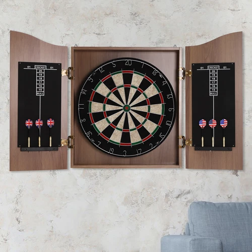 Brown Wall-mounted Wooden Dartboard W/ Cabinet & Dart Boards Set For Adults