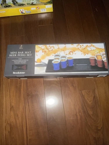 Brookstone Beer Pong Set with Dual Launchers and Mini Bar Mat