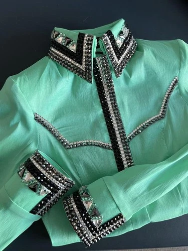 Mint Green Western Show Shirt with Crystals Rodeo Queen Horsemanship Jacket
