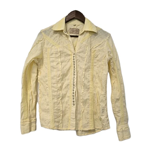 Scully Western Blouse Womens Yellow Pearl Snap Front Size Small Vintage