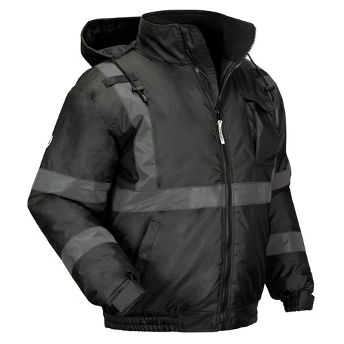 GloWear Enhanced Visibility Black Jacket - Adjustable Hood, Winter Essential, XL