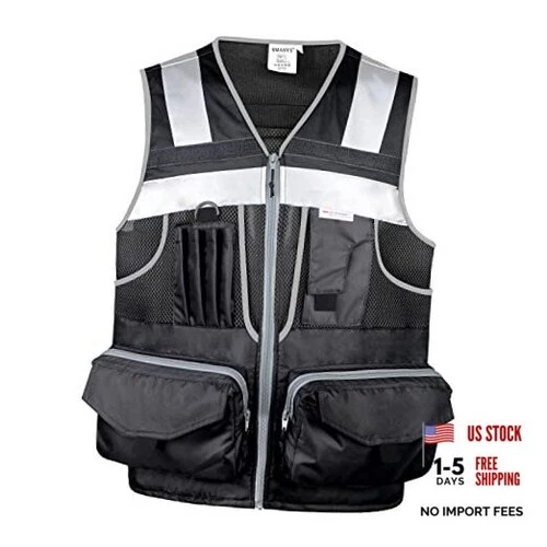 Hi Vis Safety Vest with 3M Reflective Tape, knitted and Oxford 3X-Large Black