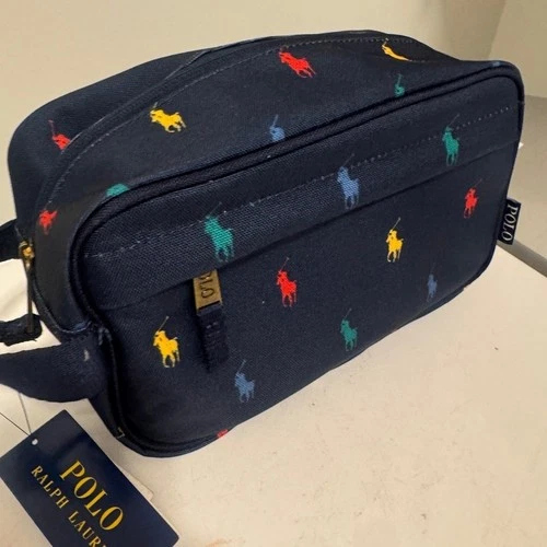 Polo by Ralph Lauren Navy Canvas Travel Dopp Kit with Multicolor Pony Motif NWT