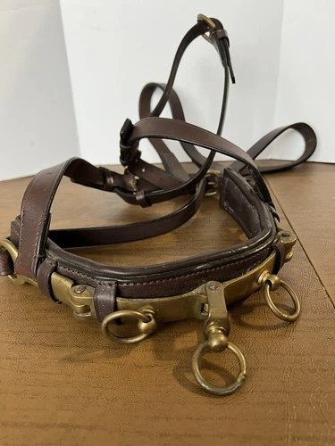 Vintage Heavy Duty Draft Horse Lunging Cavesson - Solid Brass 3-Ring - Padded