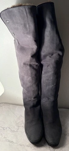 Tall Riding Boots Navy blue suedeFur Lined Zipper Closure Rubber Sole Equestrian