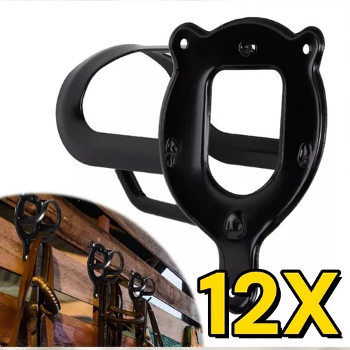 12 Pack Horse Bridle Rack Metal Hooks with Screws & Tubes, Black Bridle Holder ๑