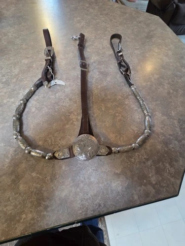 Leather Ferruled Silver Show Breast Collar Horse Size No Reserve!!