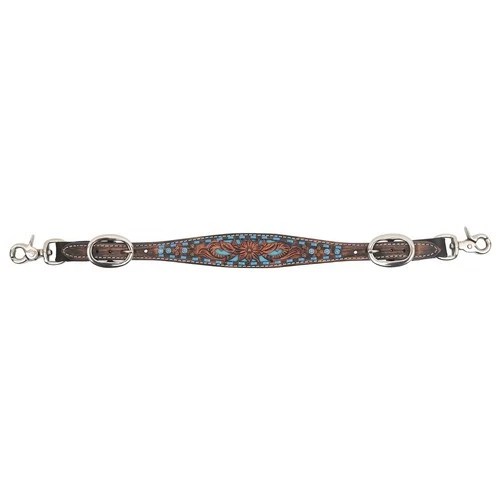 Circle Y Bronco Blue Texas Flower Adjustable Durable Leather Wither Strap with