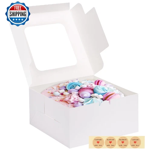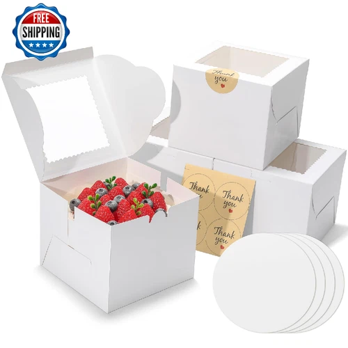 EQOREIIN 4pc 6" Cake Boxes w/ Sticks & Boards for Cookies, Small Cakes
