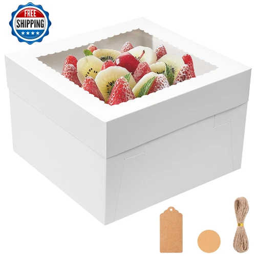 NEOACT 4-Pack 12x12x6" Square Cake Boxes with Window - For 10" Cakes
