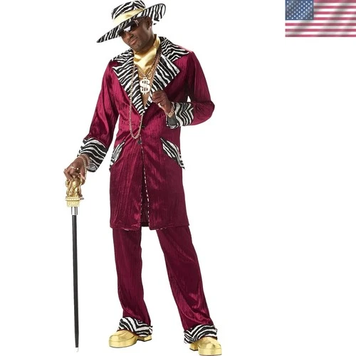 Sweet Daddy Pimp Costume Set: Jacket, Pants, Hat & Scarf - Medium Red Elegance