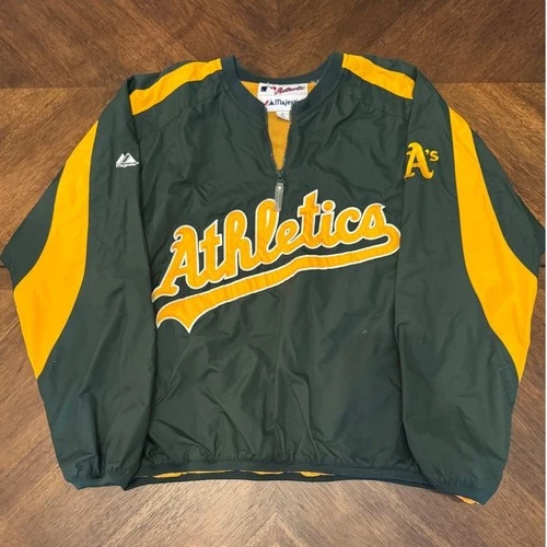 Majestic Oakland Athletics MLB Pullover Jacket Green Gold Mens Medium |W1