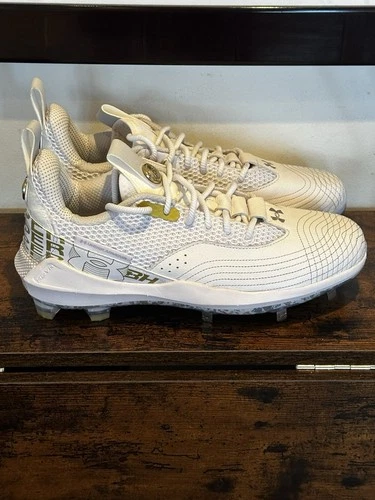 Rare New UNDER ARMOUR Men’s HARPER LOW ST BASEBALL CLEATS SZ 10.5 White Gold