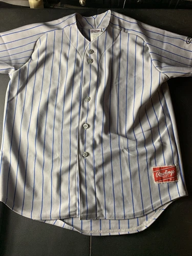 Rawlings youth Size XL Gray Blue Stripe Baseball Jersey Uniform Blank Shirt Top