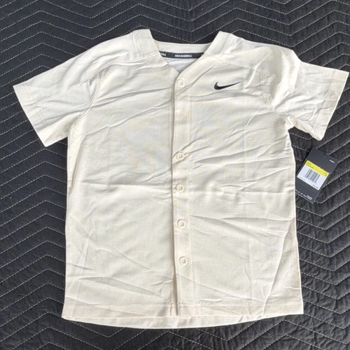 Nike Baseball Boys Beige Button-Up Jersey Shirt Size S BG0438-120