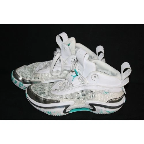 Air Jordan 36 GS Kids Boys 5 5Y White Teal Metallic Silver Basketball Shoes