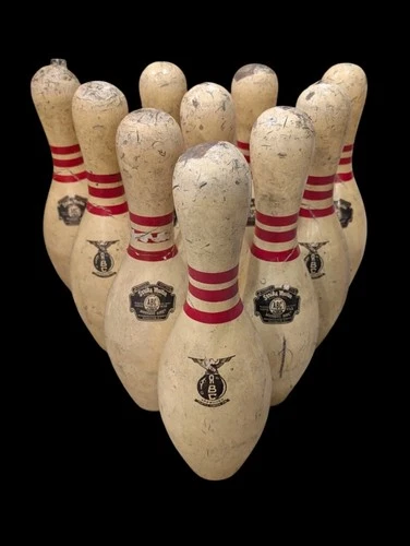 x10 Vintage ABC Strike Master Mustang Hide, Coated Wood Bowling Pin Set