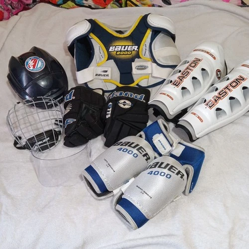 Full Hockey Gear Starter Set Bauer Helmet Pads Gloves Shin Guards SR L