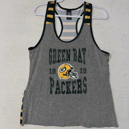 EUC NFL Green Bay Packers Tank Top Team Apparel Mesh Back Striped Women Sz XL