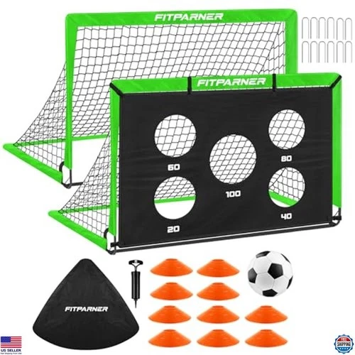 Kids Soccer Goal Set - 2 Pack Pop-Up Nets 4x3 & 6x4 ft with Ball & Cones, Ages