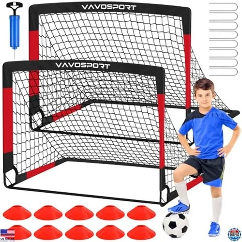 Kids Portable Soccer Goals Set of 2, 4x3 & 6x4 ft Mini Training Nets, Cones