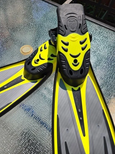 - Yellow and Blue Long Floating Fins Size US 38-39 S US Divers